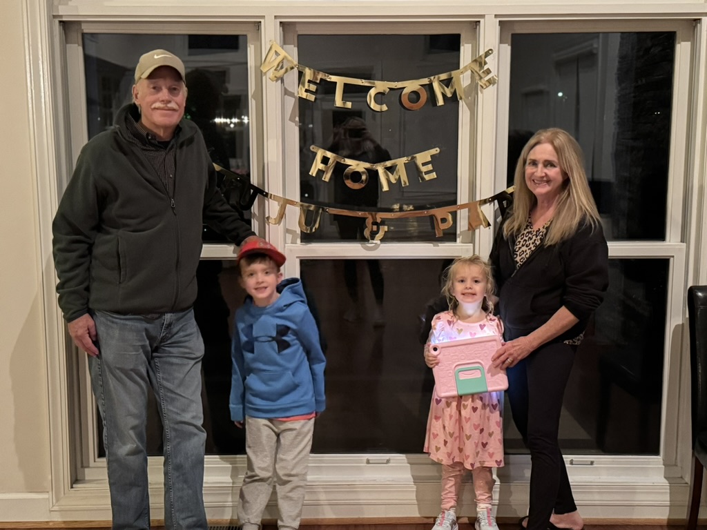 Here are some pics from our recent trip to see our new home — my favorites being the “Welcome Home, Juju and Papa” sign in the header pic above, the peaceful channel view we are privileged to enjoy, and the Southern-style veranda where I will be doing most of my writing.